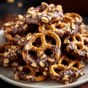 Spread the coated pretzels on the prepared baking sheet, in a single layer, and sprinkle with peanut butter chips.